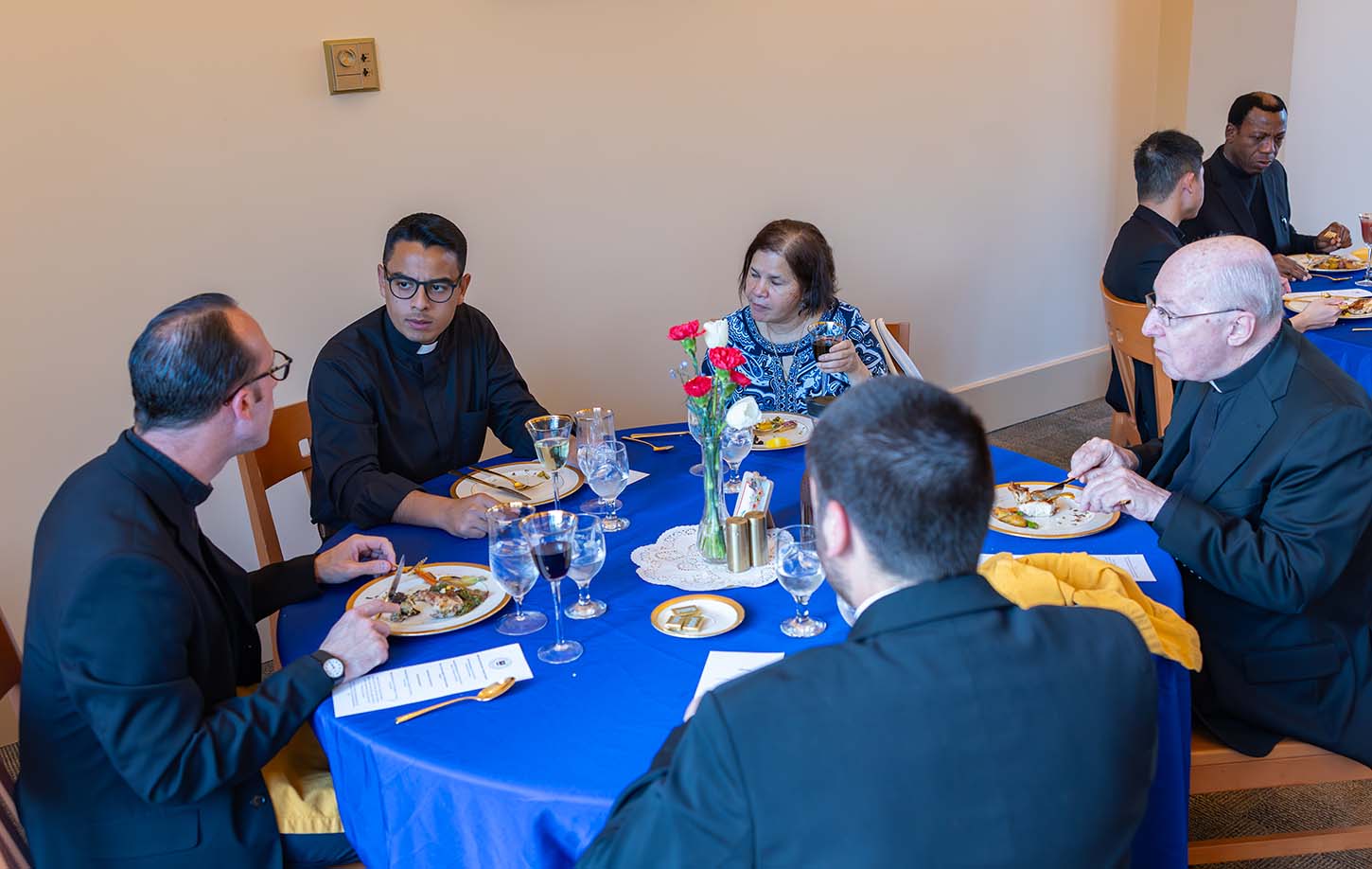 Father Jaime E. Robledo, P.S.S., Coordinator of Pastoral Formation, Spiritual Formation, and Liturgy, presided at Evening Prayer. He reflected with appreciation on the pastoral ministry program that was formally introduced at TC in 1971 by Father Gerald Brown, P.S.S. (1938–2024), as one of the country’s first supervised pastoral ministry programs that was incorporated into Catholic University’s School of Religious Studies program for all seminarians. Fifty-five years later, following the directives of the Magisterium and in response to the cultural and human challenges priests are facing today, the program continues to evolve and grow. Father Robledo acknowledged with deep gratitude the indispensability of the pastoral supervisors. He said, “We thank you supervisors for your vocation, your ministry, and your generosity in collaborating with our mission of forming pastors to serve the People of God. Gathered here is a community of living stones who offer spiritual sacrifices acceptable to God through Jesus Christ. This evening we pray together that our hearts burn within us for Jesus, who talks and walks with us on the road of this mission.”