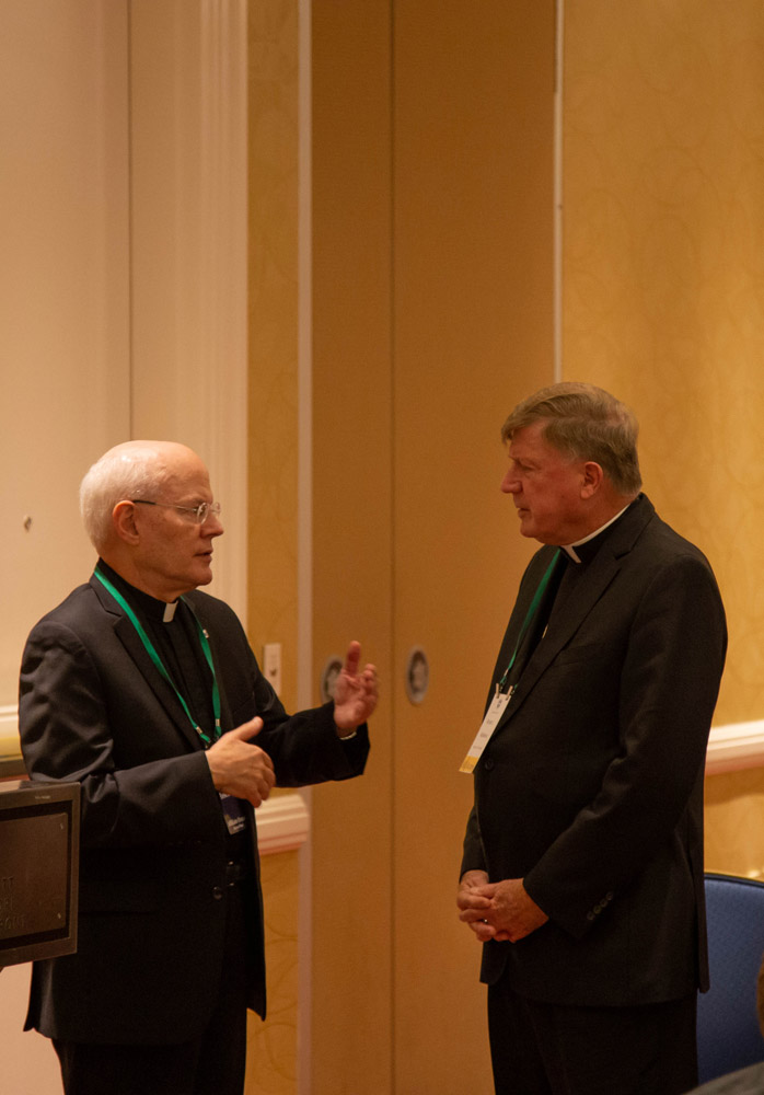 Bishop Robert Barron (Los Angeles) was in attendance at the breakfast and graciously took the time to meet with Deacon Anthony Ferguson, co-founder of the Alberione Project and Big Tree podcast series. See the bishop’s encouraging endorsement of the seminarians’ social media outreach here.